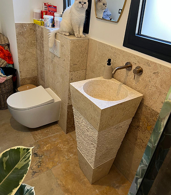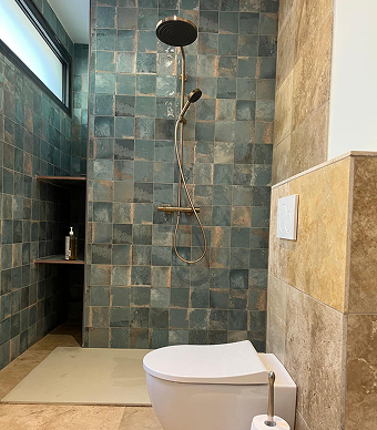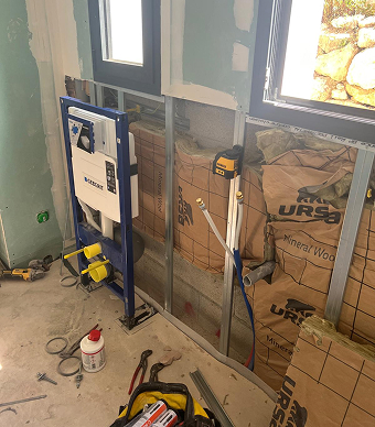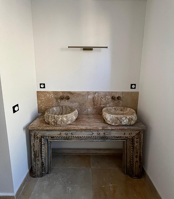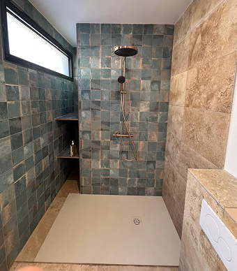 Création complète de deux salles de bains à partir de zéro, avec mise en place des évacuations jusqu’au raccordement au réseau public.